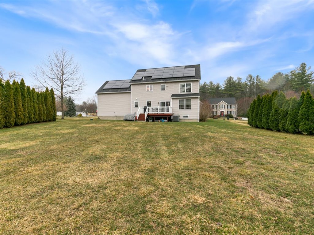 Waiting for a neighborhood where homes are well cared for, offering a sense of space and community all around you? Then this is the one! Step inside and be welcomed by an open, comfortable flow with hardwood floors and a living room with gas fireplace that naturally becomes the gathering spot and heart of the home, perfect for a quiet night in or a house full of guests. The kitchen sits at the center of it all, with easy connection to both casual living and formal dining spaces, making everyday living and entertaining feel effortless. Featuring granite counters, stainless appliances, and a center island. PLUS a flexible first-floor room offers options, ideal for a home office, den, or additional living space. Upstairs, the primary suite offers a true retreat with dual walk-in closets and a private bath designed for end-of-day reset, featuring a jetted soaking tub, separate shower, and double vanity. Three additional bedrooms, a full bath, and second-floor laundry complete the upper level where it belongs for easier living. Outside is where this home really opens up. Set on a level lot, the backyard is ready for summer barbecues, games, or simply enjoying your own space. The deck and natural privacy screening make it both functional and inviting. Recent updates include central A/C and water heater (2019/2020), solar panels (2023), high-end remote blinds, and upgraded closet systems. A large unfinished lower level offers storage and future potential, including space for a home gym or additional living area.